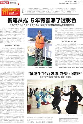 ~~~于新村考入山科大后入伍成为水兵 复学后积极发挥退役军人先锋模范作用