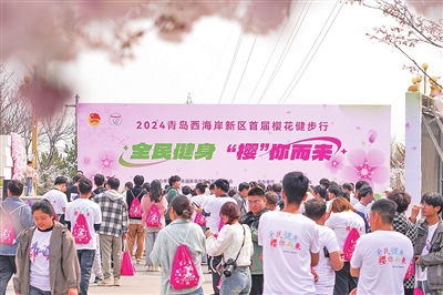 4月8日,青岛西海岸新区大场镇首届樱花健步行活动成功举办。作为大场镇第二届樱花节的组成部分,此次活动以樱花盛开为契机,以“全民健身 ‘樱’你而来”为主题,创新“赏花+”形式,解锁“赏花+体育”“赏花+文化”“赏花+乡村”“赏花+美食”“赏花+潮玩”等丰富多彩的特色春季旅行新玩法,搭建了乡村消费新场景,为市民游客呈现了一场有看头、有玩头、有劲头的综合性健身文旅盛宴。