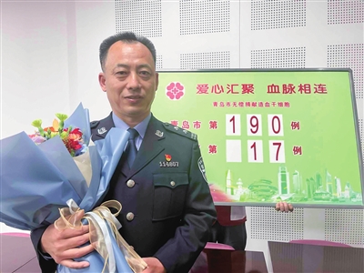 今年49岁的王万立是青岛市公安局市南分局治安管理大队一级警长,2017年6月,热爱公益事业的他在一次无偿献血活动中了解到,捐献造血干细胞可以挽救血液病患者的生命,他毫不犹豫留下血样,成为一名光荣的捐献造血干细胞志愿者。随后王万立一直密切关注着捐献造血干细胞相关信息,由于配型成功就会有电话通知,所以他一直没有换手机号码,期待着接到配型成功的电话。