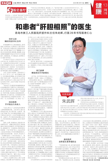 ~~~青岛市第三人民医院肝胆外科主任朱武晖:行医28年书写医者仁心