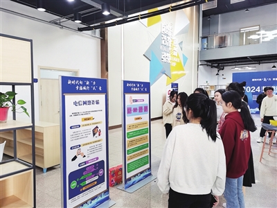 本次座谈会在青岛大学团委大楼举办,一楼设有“知识加油站”,这是青岛早报联手青岛银行保险业纠纷调解中心、金融机构代表单位等精心准备的,十多个展板呈现精彩内容,包括大学生防范诈骗、青年优徕社区、青年人才培养政策等关乎青年学生成长、优化校园环境方面的知识,现场还开展了互动答题等喜闻乐见的知识普及活动,深受大学生群体欢迎。