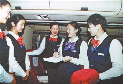 “这张图片虽然年岁久远,但我印象深刻。”原青岛画报记者张岩回忆道,“那时青岛的纺织行业不景气,1998年一批纺织企业濒临破产,不少人面临着下岗的处境,多数纺织女工年龄在30岁左右,为了贴补家用,有的转而去卖豆腐、做手工等另谋出路,我当时采访过很多这样的女工。”张岩告诉记者,就在这时,东航山东分公司在青岛纺织行业发出招聘“空嫂”的公告,一石激起千层浪,这个消息让无数纺织女工看到了希望,招聘7个职位,报名者达到3000余人。