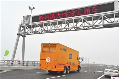 2011年6月30日,青岛胶州湾大桥正式通车,这是我国北方冰冻海域首座特大型桥梁集群工程,是国道主干线青岛至兰州高速公路的起点段,大桥全长36.48公里,是当时世界上已建成的最长的跨海大桥。大桥起于青岛市东部高科园,跨越胶州湾,在黄岛侧与已建成的济青南线顺接,使青岛、黄岛和红岛实现“品”字形连接。大桥为双向六车道高速公路兼城市快速路八车道,设计行车速度80公里每小时,桥梁宽度35米,设计基准期100年。