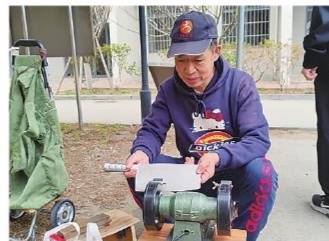 年轻时维修机械的工作经历,让他在社区服务中得心应手,他不仅能磨刀磨剪,熟练地修理自行车、儿童车,甚至能为行动不便的残疾人维修轮椅。邻居们都亲切地称他“万能爷爷”。