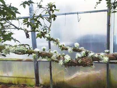 “进入5月份,头茬嘉宝果就开始成熟了,现在售价是每斤100元,主要是在青岛本地销售。”李德松告诉记者,培育嘉宝果的关键在于打造类似南方气候的生长环境,他也从不给嘉宝果喷药,平日里保持充足的水分,追施优质有机肥即可。为了让枝干接受均匀的光照,还需要注意修剪枝叶。成熟的嘉宝果树一年可以结4次果,随着四季变换交替,花果相依,花中有果、果中有花,一簇簇、毛茸茸的白色小花长满树干。嘉宝果树的树龄越长结的果就越多,产量非常可观。嘉宝果树表皮较为光滑,裸露在外的枝干均可以开花结果,一棵树一次能结80到100斤嘉宝果。