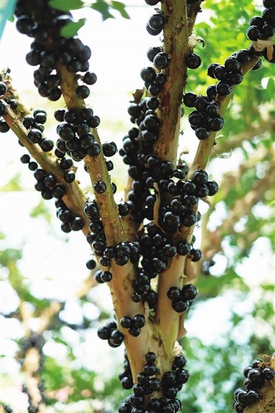 “嘉宝果富含花青素和酚类等物质,属于低糖水果,可以说是老少皆宜。”李德松介绍,嘉宝果因外形似葡萄,却不是藤蔓生长,而是长在果树枝干上,因此也被大家称为“树葡萄”,是一种原产于南美洲的高端水果,在我国市场上不常见,主要集中于南方特别是福建、广东等省,且价格较为昂贵,很多人都是“闻所未闻,见所未见”。
