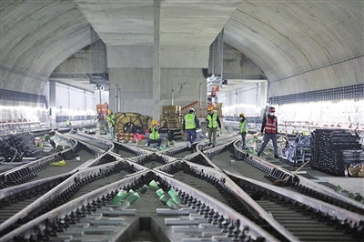 “第一遍是粗调,第二遍是精调,多次调轨的目的就是为了将轨道几何尺寸的误差控制在1毫米范围之内,以确保地铁列车在运行过程平稳、舒适。”施工技术人员韩磊告诉记者。
