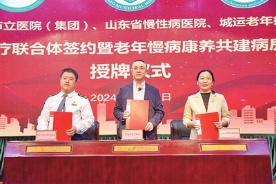 早报5月21日讯 为进一步推动医疗服务重心下移、资源下沉工作落实落地,促进优质医疗资源扩容下沉和区域均衡布局,5月21日上午,青岛市市立医院与山东省慢性病医院、青岛市城运老年病医院举行医联体合作协议签约仪式,共同推进城市医联体建设,构建更加紧密的医疗卫生服务网络,更好满足人民群众看病就医需求。