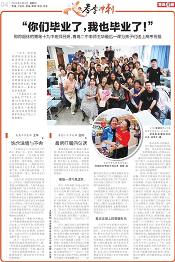 ~~~即将退休的青岛十九中老师吕妍、青岛二中老师王华最后一课为孩子们送上高考祝福