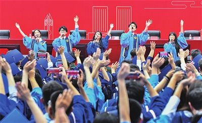 搏涛斗浪、挺膺担当,新时代的青大学子在机遇与挑战并存的人生舞台上奋笔书写,若问现场哪首歌曲最能体现他们的初心与理想?一定是这首《精忠报国》。当雄浑的歌声响起,当五星红旗在屏幕上飘扬,现场有人高声合唱,有人热泪盈眶。在这首经典老歌的中间,一段气势磅礴的原创Rap横空出世,演唱学生在十余个日夜中倾情作词,诉说着动人心魄的故事,饱含着青年人从军报国的热烈情感。青大学子坚定报国之志,争当理想者、担当者、吃苦者、奋斗者,必将在走出校园后的无限未来中,在中国式现代化这场充满考验与挑战、光荣与梦想的征途上,书写属于自己的“青春答卷”!