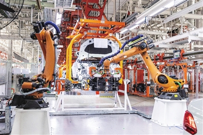 在一汽-大众汽车有限公司青岛分公司,平均54秒下线一台车,最高日产可达1408台整车。瞄准智能制造,2020年以来,一汽-大众青岛分公司对原有技术装备和生产流程进行智能化改造、信息化提升,探索创新自动化项目26项,涂胶、喷漆、输送等工艺100%自动化,生产车间设备100%联网,节省成本4000多万元,提升生产效率20%,实现研发、生产、销售的互联互通。