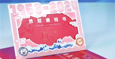 2024年正值中国海洋大学建校100周年,学校2024年录取通知书首次采用礼盒套装样式,以新的包装样式表达了对2024届新生的期盼。录取通知书以学校深厚的历史底蕴为基,汲取与海大息息相关的标志性元素,从海大精神到海大美景再到海大办学成就,众多关键词汇成专属海大的百年印记。录取通知书上,一艘破浪前行的“东方红3”号船,象征着破浪前行的精神,期盼新生学子继承荣光,乘风破浪以深耕学海。