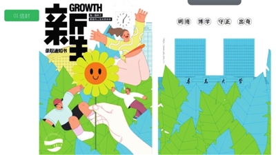 今年青岛大学的录取通知书可谓独出心裁,迎面而来仿佛吹过一阵青岛的海风,清爽又充满活力。