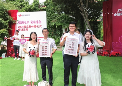 2024年青岛集体婚礼式颁证活动在七夕节当天浪漫上演