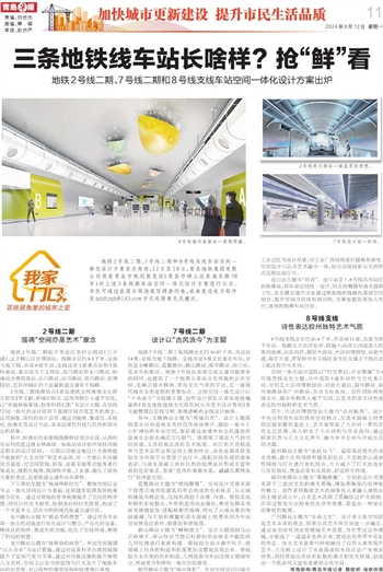 地铁2号线二期、7号线二期和8号线支线车站空间一体化设计方案首次亮相,12日至18日,青岛地铁集团有限公司将在青岛市规划展览馆(青岛市崂山区东海东路78号)对上述3条线路车站空间一体化设计方案进行公示。市民可通过在展示现场填写调查问卷,或者发送电子邮件至qddtzgb@163.com方式反馈意见及建议。