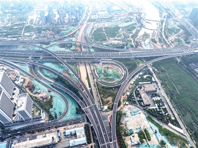 在重庆高架路建设过程中,智慧、绿色建造理念融入其中。据青岛城发城市更新有限公司总工程师冯靖宇介绍,金水路、长沙路跨线桥上部结构全部采用预制装配智能建造工艺,此外两个跨线桥在桥梁关键点位采用UHPC超高性能混凝土替代传统混凝土,并积极应用桥梁防腐涂装、融雪路面、防渗雨水口等新材料、新工艺,有效提升施工效率和桥梁结构、设施的耐久性、安全性,全面打造安全、优质的高品质城市高架。