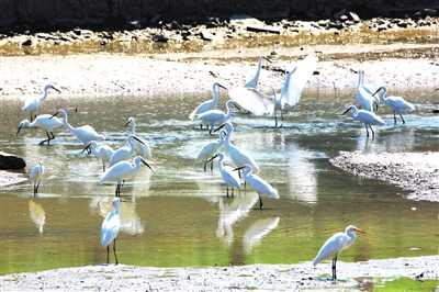 “观水寻澜为我拙,衔山暮色为谁留。”夏末初秋,在位于即墨区环秀湖体育休闲公园里,不少骑行爱好者来到生态滨湖绿色廊道上慢骑环游,站在公园中部的“观澜”景观桥上凭栏远眺,向北可望水光潋滟的环秀湖,往南则可以看见郁郁葱葱的湿地景观,湖水上水鸟凫回、白鹭齐飞。近年来,即墨区坚持以持续改善流域水生态环境质量为目标,持续推动水生态保护。