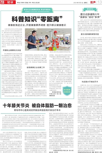 近日,患左膝骨关节炎十年之久的张女士在青岛市中心医院接受了自体脂肪微片段治疗术,手术当天感觉良好,术后两周左膝关节疼痛消失,关节活动明显改善。