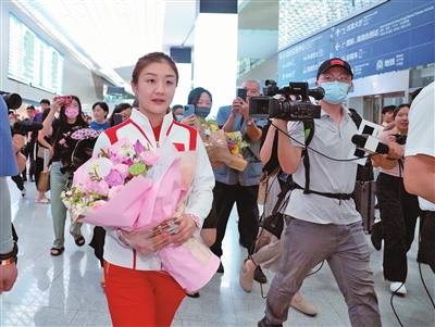 看到女儿与热情的接机球迷互动,陈梦的母亲逄敏满眼笑意,“女儿终于有空回家了。大家也都知道,竞技体育不吃苦是很难出成绩的,梦梦这几年过得格外辛苦。这3年来,女儿身上有伤,加上年龄已经偏大,为了保持竞技状态,只能在训练、尤其是体能训练上狠下苦功。”备战巴黎奥运会的日子里,陈梦跟家里联系时向来是“报喜不报忧”,当中的辛苦只字不提。但母女连心,逄敏一直都知晓女儿的不易,更明白女儿心中的那团“火”,“在巴黎奥运会上取得好成绩是她的目标,我也是最近才知道。巴黎奥运会备战期间,梦梦一度因为腰伤不能久坐,队里开会时只能站着。为了实现站上最高领奖台的目标,女儿咬牙坚持训练,最终挺了过来,在巴黎证明了自己,这些努力也没有白费。”