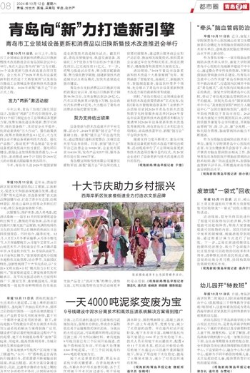 今年,青岛市入选2024年度国家制造业新型技术改造城市试点。截至目前,青岛市智能家电、轨道交通装备、高端化工3个优势主导行业的20个重点技改项目,已完成投资11亿元。下一步,将聚力推进试点任务、聚力落实配套政策、聚力强化数字赋能,创建新型技术改造城市试点青岛模式,加快先进制造业强市建设。