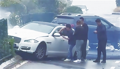 “现在想想还是特别后怕,因为司机一直在不停加油,车轮还在不停地和地面摩擦,随时有冲出去发生二次碰撞的危险。”刘鹏回忆当时的场景还心有余悸。根据刘鹏的描述,14日下午1点左右,他开车经过劲松三路和同安路路口。“当时看到前面有车出了事故,升起白烟,我还以为是有车辆自燃,准备下车拍摄新闻素材。”但当他下车后发现,是一辆白色轿车和一辆黑色SUV相撞后,白色轿车一头扎进了绿化带。但不知为何白色轿车还一直在加大油门,车辆的右后轮也在不停地和地面摩擦,因为车头被绿化带阻挡才没有冲出去。“当时我以为是车祸导致车辆出了故障,但路边有人说司机还在车里。”刘鹏说。
