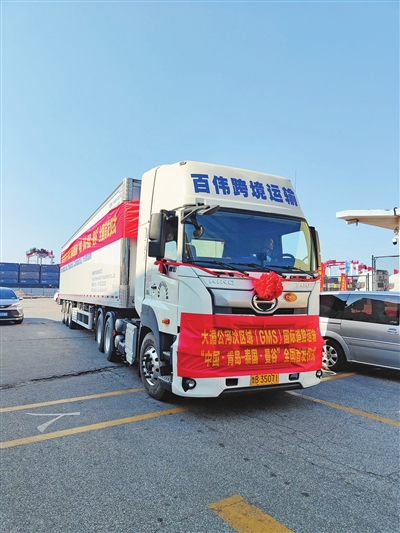 早报11月8日讯 11月8日,大湄公河次区域(GMS)国际道路运输“中国·青岛—泰国·曼谷”全国首发仪式在青岛启动。国际道路货物运输车辆从青岛口岸报关,预计用时七天,途经江苏、安徽、湖北等8个省份,经磨憨口岸出境,过境老挝,最终抵达泰国曼谷,总运程约4400公里。此次发运货物为山东农产品,返程时企业计划从泰国当地组织货物回国。