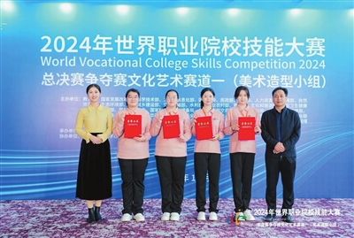 在各级大赛的舞台上包揽同一赛项的一等奖,足以证明一所学校的硬实力。2023年,美术造型赛项首次亮相职业院校技能大赛,青岛经济职业学校作为东道主,拿下了国赛和省赛的双重冠军;2024年的世界职业院校技能大赛争夺赛和山东省省赛中,学校在这个赛项上再次捧回两枚金牌。领跑赛项,靠的是不断提升的教学质量和水平,为推进职业教育发展不懈赋能。