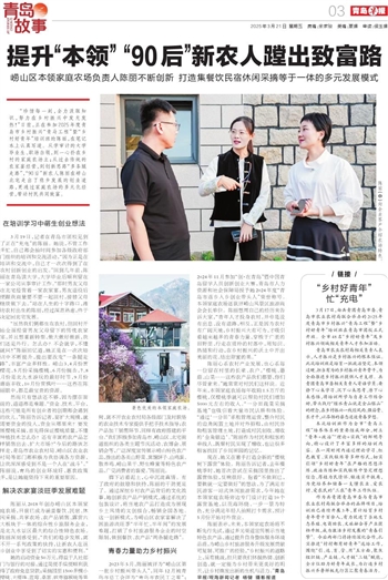 “珍惜每一刻,全力汲取知识,努力在乡村振兴中发光发热!”日前,正在参加2025年度青岛市乡村振兴“青马工程”暨“乡村好青年”培训班的陈丽,在笔记本上认真写道。从学审计的大学毕业生、职场白领,到一心扑在乡村的家庭农场主;从过去传统的农家宴经营,到创新思路“多条腿走路”,“90后”新农人陈丽在崂山北宅走出了稳步发展的创业道路,更通过家庭农场的多元化经营,带动村民共同致富。