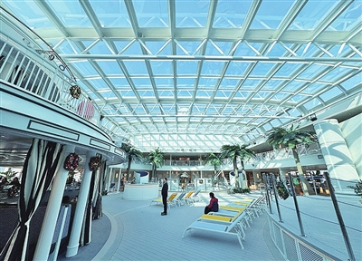 “爱达・魔都”号配备了高达16层的上层建筑生活区,拥有剧院、特色餐馆、购物广场、艺术走廊和水上乐园等丰富的休闲设施,融合上海都市风情与敦煌飞天壁画艺术,打造出全景套房(25—37平方米)、巴伐利亚主题房(15—22平方米)等多元舱型,其舱内艺术空间融合灵动的中式线条与摩登色调,全景套房乘客享专属礼遇,巴伐利亚主题房可免费进入观海酒吧,为乘客提供“东西交融”的美学体验。
