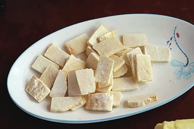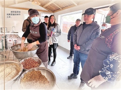 调研组跟随陈丽体验了制作奶豆腐的关键环节:熬奶需文火慢煨以防糊底,点醋时需分次倒入观察凝固状态。虽然制作工艺看似简单,但火候拿捏全凭经验。为此,陈丽尝试改良油炸工艺,让工艺更易操作,而且口感更蓬松。此外,他们还开发了即食包装,让游客带得走、存得住。