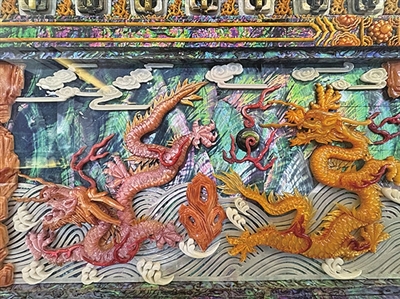 “每一片贝壳都有独一无二的纹理,雕刻要‘因材施艺’。”贝雕传承人刘武向调研组展示了一件以珍珠贝为原料的立体摆件,龙鳞细密如发,亭台楼阁层次分明。这项源自西周的“螺钿”工艺,曾创下产品出口30多个国家的辉煌。如今,贝雕产品从巨幅壁画拓展到首饰、摆件等轻量化商品。传承项目负责人指着一枚刻有崂山风景的胸针介绍:“我们采用新技术提升效率,但手工雕刻的灵魂不能丢。”