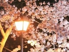 樱花在灯光的烘托下光影婆娑,犹如仙境。