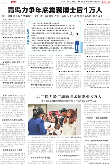 ~~~推出加快博士后人才集聚“十大行动” 专门发行“博士后银行卡”、设立博士后站350个以上……