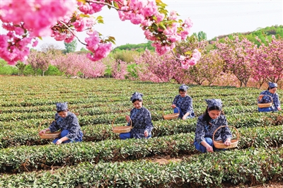 开幕式以“茶传承”为引,在中国石油大学(华东)青年学子《花开新时代》歌声中拉开帷幕,现场大屏连线万亩茶山,由“老中青”三代茶乡人共采“第一篓”春茶。连线视频中,海青万亩茶山青翠醉人,碧绿茶园中,海青绿茶种植加工技艺老一辈传承人带领青年传承人和孩子们在茶山探寻茶之精髓,共同采摘谷雨鲜叶,寓意着传统技艺与新生力量的薪火相传。据悉,为了让更多年轻人体验茶文化魅力,海青镇还联合驻区高校、新联会、网联会等青年群体,通过拍摄“茶山九宫格”、骑行“茶山彩虹路”等方式,宣传推介海青茶旅品牌。