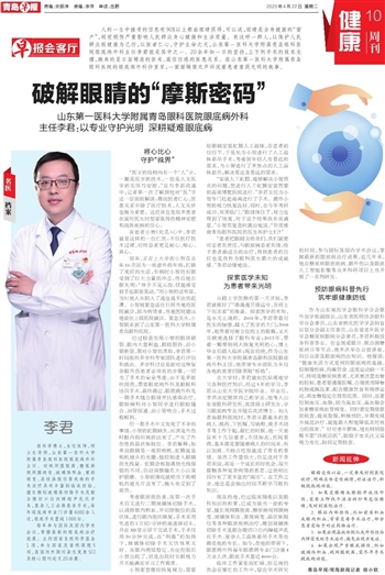 作为山东省医学会眼科学分会眼外伤学组副组长,山东省医师协会眼科学分会委员,山东省转化医学学会防盲治盲分会副主任委员,山东省老年医学学会糖尿病眼病分会委员,李君积极投身科普事业。在全国爱眼日、联合国糖尿病日等节点,他多次举办公益讲座,向公众普及眼底病防治知识。他强调:“健康生活方式是预防眼底病的基础,控制慢性病、均衡饮食、适度运动缺一不可,特别是糖尿病患者,尤其要注意血糖的控制,患者要遵循医嘱,合理使用降糖药物或胰岛素,配合健康饮食和规律运动,将血糖稳定在理想范围。同时,还要控制血压、血脂,因为高血压、高血脂会加重糖尿病血管病变。同时要定期做眼底检查,提高警惕,积极预防,早期发现并规范治疗,就能最大程度降低其对视力的损害。” 针对老年群体,他也特别提醒不要“讳疾忌医”,鼓励子女关注父母视力变化,陪同定期检查。