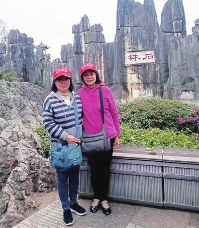 在千户苗寨、玉龙雪山、黄果树瀑布的壮美中领略自然风光,在龙虎山、丽江古城的绮丽中探访人文风情,在苗家长桌宴品尝特色酸汤鱼,特别是在花开富贵宴、彝族风味餐、大理白族风味餐等美食中尽享祖国大好河山……在旅行的火车上,刘乃蕴和朋友一路畅谈一路欣赏美景,“对我们老年人来说,坐在火车上慢慢看一路风景,感觉挺不错的。”刘乃蕴表示,每次外出旅行,她最期待的就是欣赏壮阔的自然景观,这次旅行她最难忘的便是黄果树瀑布和昆明石林,“看到以后整个人感觉特别壮观和震撼,感叹大自然的鬼斧神工,真是太奇妙了!”每当看到美景时,刘乃蕴就和朋友互相拍照留念,一路游玩下来拍了上百张照片。“每到一处景点就会打卡留念,整个旅行线路安排得很全面,感觉很不错。”刘乃蕴说道,“因为这次去的景点比较多,所以带了三季的衣服,虽然有时候行李有点多可能会感到累,但是旅行过程都是很美好的,有一种‘累并快乐着’的感觉!”
