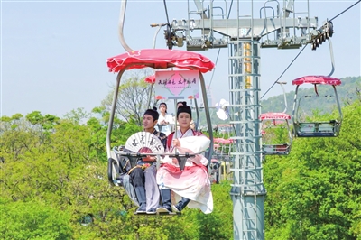 上午10时36分,空中汉服秀环节正式开始。汉服爱好者们坐上索道,衣袂当风,在青山碧海间绘就一幅流动的画卷。五一假期,汉服巡游将再度亮相太平山索道,邀您共赏山海间的春日盛景。