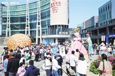 李沧区的乐客城化身国风奇幻天地,“乐客有戏国风市集”携手天空戏城商户与民俗协会,掀起了一阵国风热浪。超值购券活动和停车优惠,吸引了众多消费者前来体验。丽达绿城店举办的“打工人放轻松”活动,以奇妙动物园、小小牙医研学、科学实验研学等丰富多彩的活动,营造了浓厚的节日消费氛围。