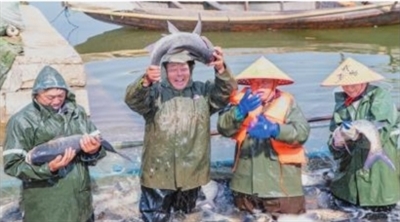 5月1日上午,莱西湖畔曙光初照,渔船破浪而归。当渔网缓缓拉起,肥硕的鳙鱼、鲢鱼在网中翻腾,引得岸边游客惊呼连连。仅一上午便收获了3万多斤渔获。在“生态莱西湖 休闲渔乐季”开幕式上,象征“年年有余”的“头鱼”拍卖将现场气氛推向高潮。“生态莱西湖 休闲渔乐季”以“一条鱼带活一座城”为核心理念,创新打造“渔文化+”产业链。别具匠心的渔装秀,展现独特的渔家风情;大师主理的全鱼宴,满足游客的味蕾;沉浸式生态捕鱼体验,将渔业资源与文化创意深度融合。单日最多时吸引了超3万名游客。