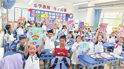 青岛平安路第二小学开展“我的六一我做主”小调研,倾听少先队员的意见和建议,精心策划他们喜欢的活动,如科技秀、才艺秀、美食秀等。有的班级通过龙舟DIY、编彩绳、画端午扇等体验,感受传统节日的魅力;有的班级开展美食DIY,学生们在品尝美食的同时,感悟劳动创造幸福的意义;有的班级学生载歌载舞,通过才艺展示庆祝自己的节日。