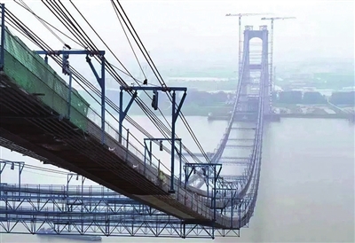 早报6月3日讯 近日,随着最后一根索股精准就位,世界最大跨径四主缆悬索桥、全球首座不同垂度四主缆双层钢桁梁悬索桥——燕矶长江大桥的主缆架设宣告完成。单根主缆总拉力达14.5万吨,足以轻松吊起2艘中型航母。由西海岸新区企业青岛特钢研发的超高强度缆索用钢,为该工程提供了重要助力。