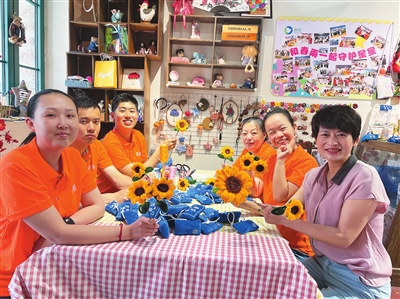 “这家店是去年12月3日开业的,到现在已有半年多时间。店里经常有市民、志愿者来做公益、献爱心,还吸引了上万名游客、网友专门来到店里打卡支持。他们自发地在社交平台上发帖宣传,呼吁共同守护‘星星的孩子’。”崔永兰告诉记者。记者了解到,崔永兰是中国好人、全国自强模范、山东省自强模范、山东好人之星、“感动青岛”道德模范,同时也是市北区春雨残疾人辅助性就业中心主任和春雨文创店的创办者,是100多位“喜憨儿”的“崔妈妈”。多年来,崔永兰一直在不断探索残疾人辅助性就业渠道。去年12月3日,也是第33个国际残疾人日,在青岛市残联的指导帮助下,春雨文创店正式开张了。这间开在大鲍岛的文创小铺以温馨的装潢和富有创意的文创产品吸引了大量顾客,收获了无数好评。