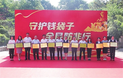 早报6月17日讯 6月17日上午,在青岛市委金融办、青岛日报报业集团、市北区政府的共同指导下,市北区金融办联合公安市北分局、辽宁路街道、老年生活报,以及农行四方支行等14家金融机构,在贮水山公园共同开展“守护钱袋子 全民防非行”主题宣传活动。现场通过文艺汇演、倡议发布、授牌表彰等形式,向市民普及防非知识,提升金融风险防范意识。