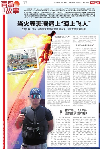 ~~~22岁海上飞人火壶表演者邹信聪踏浪逐火 点燃青岛夏夜激情