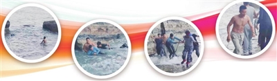 “原计划把他往最近的礁石区拖,但靠近后发现礁石上长满了牡蛎,光着脚根本无法攀爬。”千钧一发之际,他发现右侧20米处有片凸起的玄武岩礁石,于是迅速调整方向,向它游去。岸边5名游客见状,自发地将3根登山杖首尾相连,组成5米长的“救援链”。张小龙说道,整个救人过程有三四分钟,当自己将落水游客拖至礁石区时,岸上众人合力拽住了落水游客的手臂,将他拉上了岸。