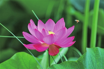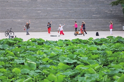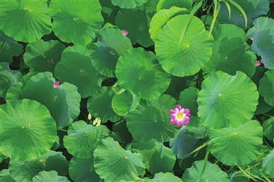 在世博园景区的荷塘中,微风拂过,竞相开放的荷花摇曳生姿,与园内古色古香的建筑相得益彰。与此同时,李村河公园的荷花也进入盛花期。沿木栈道漫步,可见河畔荷花与睡莲错落分布,吸引不少市民驻足拍照。