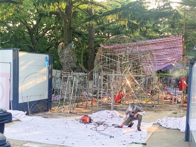 一名现场维持秩序的保安告诉记者,市民和游客都很好奇这里围起来到底要干什么,通过询问或者看到施工通告知道要办灯会的消息后,都非常期待。“大家都会问灯会什么时候开,到时开几个门,还有一些要参加灯会的商家过来问逛公园的小孩会不会多。我告诉他们,来逛公园的除了情侣,大多都是带着孩子来玩的,这个回答让商家信心满满。”这名保安笑着说。