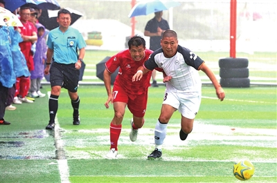 众人瞩目的机关组冠军争夺战在滂沱大雨中激情上演。卫冕冠军市公安局队与劲旅市委宣传部队狭路相逢。雨水浇泻,场地湿滑如镜,却浇不灭双方燃烧的斗志。开场,市公安局队便尽显王者之姿,凭借默契配合和犀利进攻,频频向对手腹地施压。市委宣传部队在多名主力伤缺的情况下,依然沉着应战,稳扎稳打,筑起防守的铜墙铁壁,并伺机发动反击。上半场,市公安局队率先洞穿对手大门,然而欢呼声尚未平息,市委宣传部队便如猎豹般迅速反扑,一记漂亮的射门扳平比分。精彩的互攻瞬间点燃全场,喝彩声震耳欲聋。