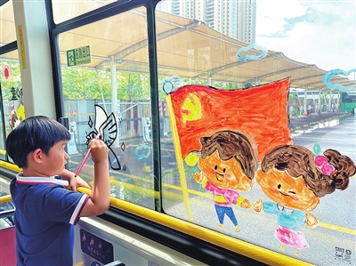6月30日,市南巴士第八分公司联合燕园幼儿园开展的“童心向党绘车厢”活动别开生面。20余名幼儿在7路公交车上以天真的笔触描绘对党的祝福——金色的党徽旁环绕着彩虹,和平鸽衔着橄榄枝飞过天安门,稚嫩的画作引得候车乘客纷纷驻足拍照。“孩子们把对党的爱画进了细节里。”带队教师吴老师指着车窗上一朵小花解释,“他们说这是送给党的生日礼物。”