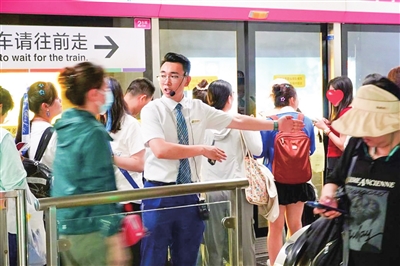 在地铁站化妆间、更衣室等原有设施的基础上,地铁工作人员考虑到客群特点,打造了“家长等候区”,全方位满足乘客的多元化需求。周深演唱会期间突降大雨,工作人员在地铁站出入口加强引导,主动为有需要的乘客撑伞、发放雨衣,第一时间清理道路积水。